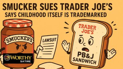 (Worthy Satire) – In a move that has peanut butter lovers nationwide sticking to their seats, The J.M. Smucker Company has filed a lawsuit against Trader Joe’s, accusing the grocer’s new crustless PB&J sandwiches of being “confusingly similar” to Smucker’s beloved Uncrustables.